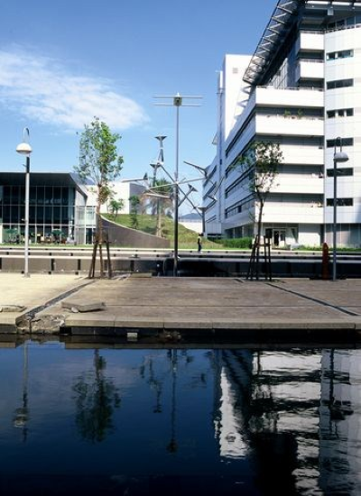 「彩虹的誕生」這件作品中「水」事主要的元素,新恭晉說:「水具有讓人平靜的力量,我的動力雕塑使觀者更加平和、安靜、永遠不會厭倦,並期待作品喚醒每個人的內在之心以及與大自然對話的本能。」在勘查地點時,新恭晉靜觀風向、感受風速,並查看日光在空地上的刻度,想像風、雨水等自然動力相承的效果,此一設置地點是園區中日照最長的聚光點,有自然的風從四面八方而來。透過作品,藝術家雕刻出風的軌跡,顯現出水的舞動,在城市中被我們忽視的自然力量被點醒,讓我們重新感受。「彩虹的誕生」這件作品正是日本藝術大師新恭晉送給園區高科技人才的一份來自大自然的禮物。