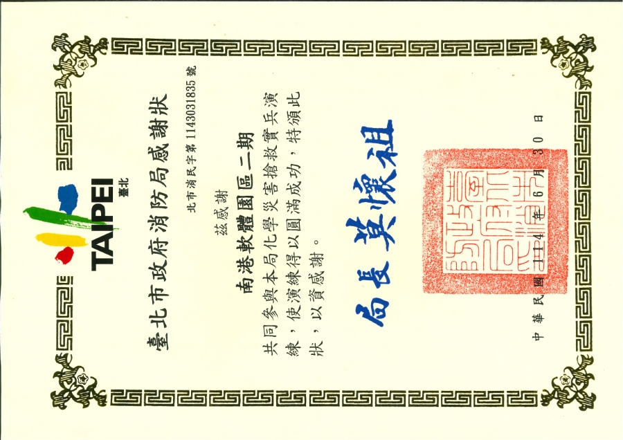 臺北市政府消防局感謝狀