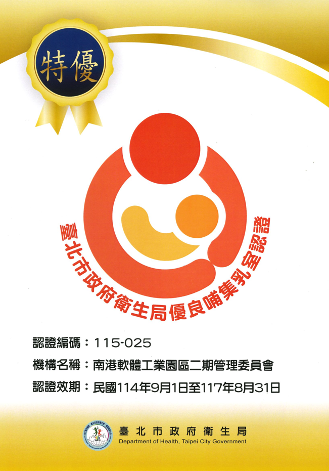 【園區公告】榮獲 臺北市政府衛生局「優良哺集乳室 特優」認證 🏅✨