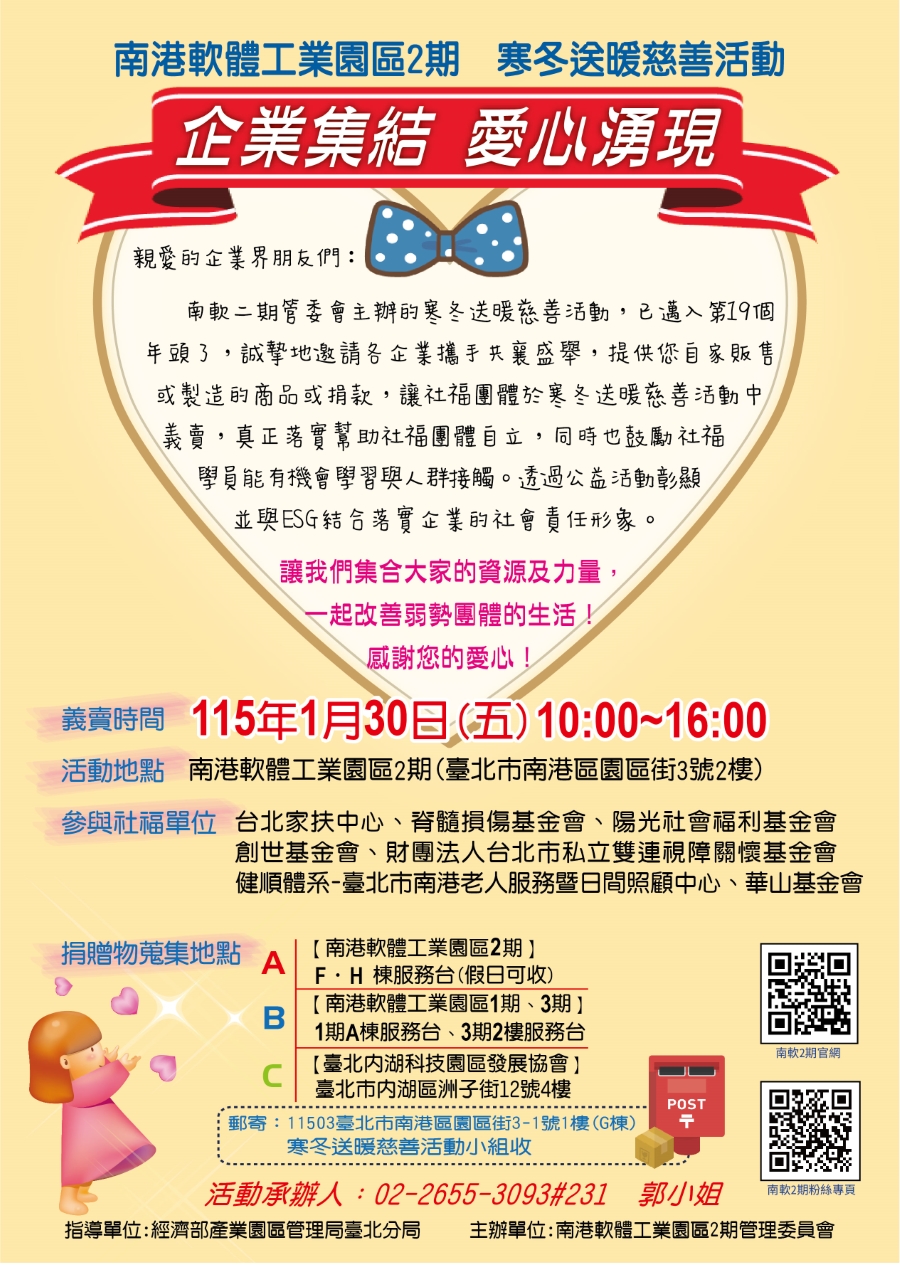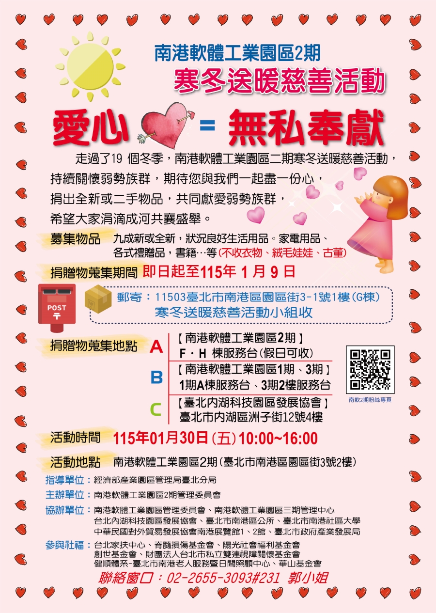 【園區公告】第19屆寒冬送暖|物資募集 開始囉!