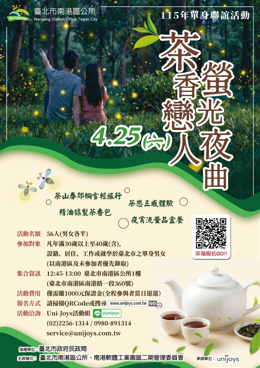 【園區公告】2026 單身聯誼活動 🌿✨ 茶香戀人.螢光夜曲 ✨🌿